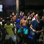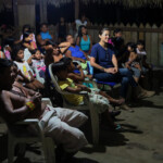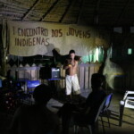 À noite, estivemos com o pessoal do Coletivo Audiovisual. Eles mostraram vídeos produzidos em 2017, nos quais denunciavam ataques feitos por garimpeiros e madeireiros em seu território. Foi uma trocamuito interessante, especialmente porque o diretor Luiz Fernando aproveitou o encontro para dar dicas técnicas aos integrantes do coletivo sobre como melhorar suas gravações.