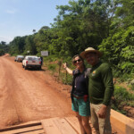 Voltando à viagem, seguimos nosso caminho pela Transamazônica, uma obra faraônica da época do “Brasil Grande” idealizada pela ditadura e até hoje inacabada. Em duas caminhonetes lotadas de equipamentos e mantimentos percorremos a rodovia por pouco mais de uma hora até o porto onde pegaríamos as voadeiras para a aldeia. O trajeto foi praticamente todo em estrada de terra e em alguns trechos margeando o Rio Tapajós.