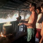 Depois de ouvir muitos causos do cacique, seguimos para acompanhar a produção do kaxiri, a bebida a base de batata e farinha de mandioca que tinha começado a ser preparada no dia anterior e que seria consumida naquela noite.