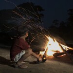 Com a trégua na chuva, conseguimos nos reunir à noite em volta de uma fogueira para que os caciques Jairo e Juarez pudessem compartilhar com os mais novos as sabedorias dos Munduruku.