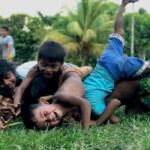 4º e 5º dia:Depois de já ambientados e com uma grande interação com as crianças, começamos a gravar imagens para o filme. Montamos um set de filmagem no campinho e passamos a manhã nesta gravação. Na parte da tarde, seguimos com as filmagens no igarapé, sempre acompanhados das crianças.